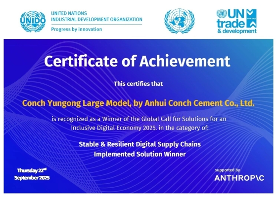 近日,海螺集團(tuán)下屬“安徽海螺水泥股份有限公司——海螺云工大模型”在聯(lián)合國工業(yè)發(fā)展組織等機(jī)構(gòu)于2025年7月發(fā)起的“2025包容性數(shù)字經(jīng)濟(jì)全球解決方案征集”中,榮獲:&ens...